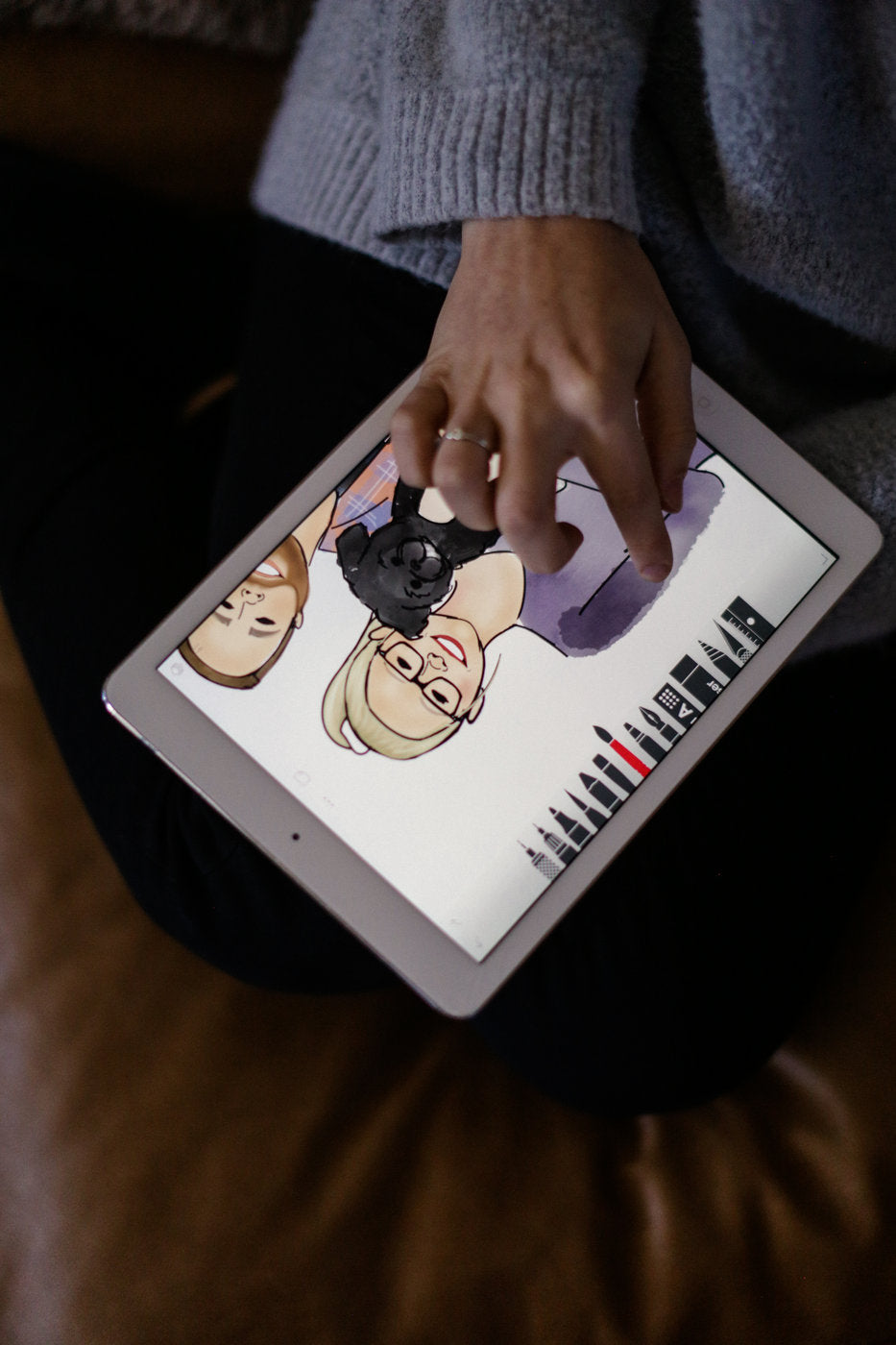 Requests started coming in, and, as my portfolio grew, so did demand for my artwork. I call it fingerpainting because that’s exactly what it is – I sketch every single picture on my iPad Pro using only my finger. I am constantly inspired by the people I draw, and I try to capture each person’s (or animal’s!) aura through my artwork.